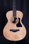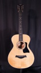 This model from Taylor offers very comfortable playability and excellent tone. The solid sitka spruce top and solid sapele back and sides gives you a warm, even, and crisp tone. Lovely appointments like the slotted headstock and gemstone inlays give this guitar visual elegance. Taylor electronis provide easy sculpting of your tone when plugged in. Hardcase included. Please message us if you have questions about this guitar.