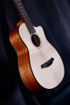 The Pioneer series from Furch is the perfect travel or just chill on the couch at home instrument. Not to mention perfect for young beginners! This short scale guitar is constructed with solid Englemann spruce top and solid African mahogany back and sides. This little guy may be small, but don't let its size fool you. Furch does not compromise on tone. With their proprietary sound board voicing process and Booster Soundport resonator, this guitar delivers rich, warm balanced tone. Padded gigbag included. Please reach out to us if you have questions about this guitar.