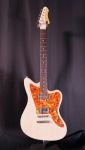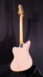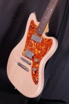 This Oltre JM6 has a light relic finish. There is some finish checking and dings here and there. This model plays very smooth. With an early 60’s “C” Shape Neck .830 – .920, the neck fits well in the hand and has a nice slim feel at the lower end and gets a little heftier up at the 12th fret. This guitar just looks classy! Love the transparent pinkish color and tortoise plate. The neck p90 and bridge humbucker gives you a wide variety of tones. Pick this one up while you can! Fano padded gigbag included.